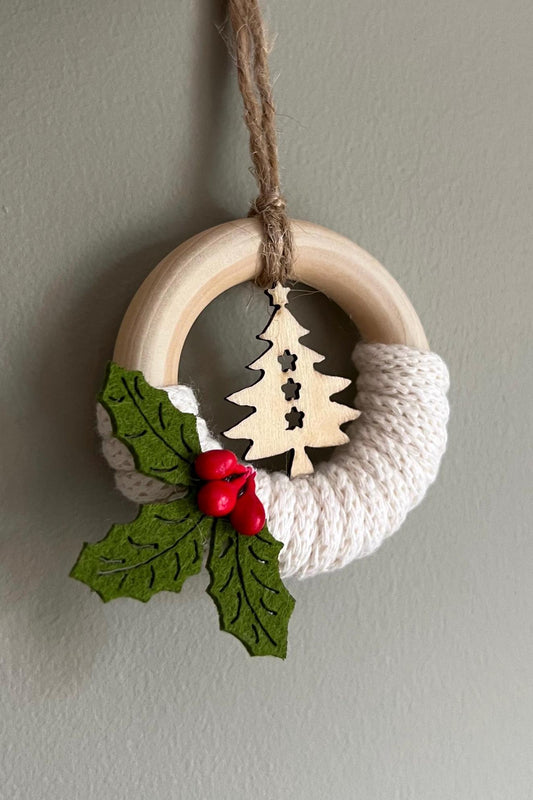 Mini Tree and Red Berry Macrame Christmas Wreath