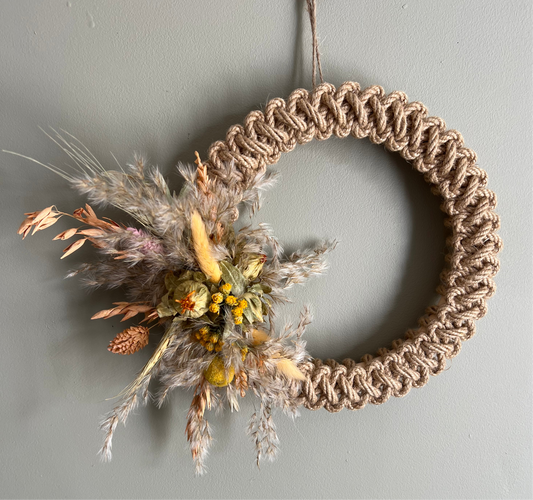 Jute & Pampas Dried Flower Macrame Wreath - 20cm