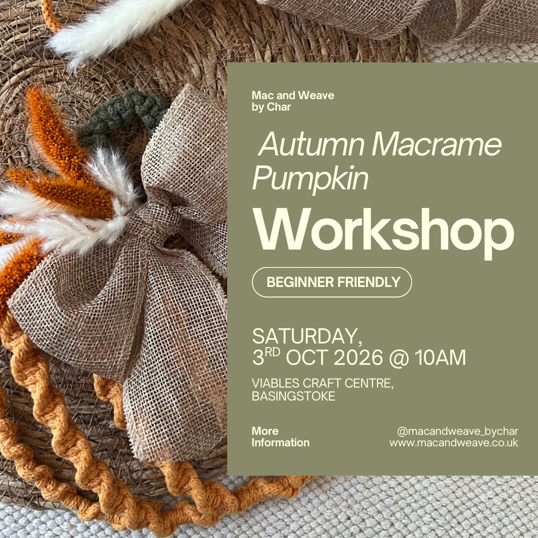 Autumn Macrame Pumpkin Workshop & Cream Tea - 3rd October 2026 - Basingstoke - Viables Craft Centre
